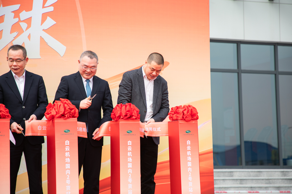 在热烈的掌声中,钱猛董事长与其他嘉宾共同为白云机场国内2号货站剪彩,宣告这一现代化货运枢纽正式投入运营。